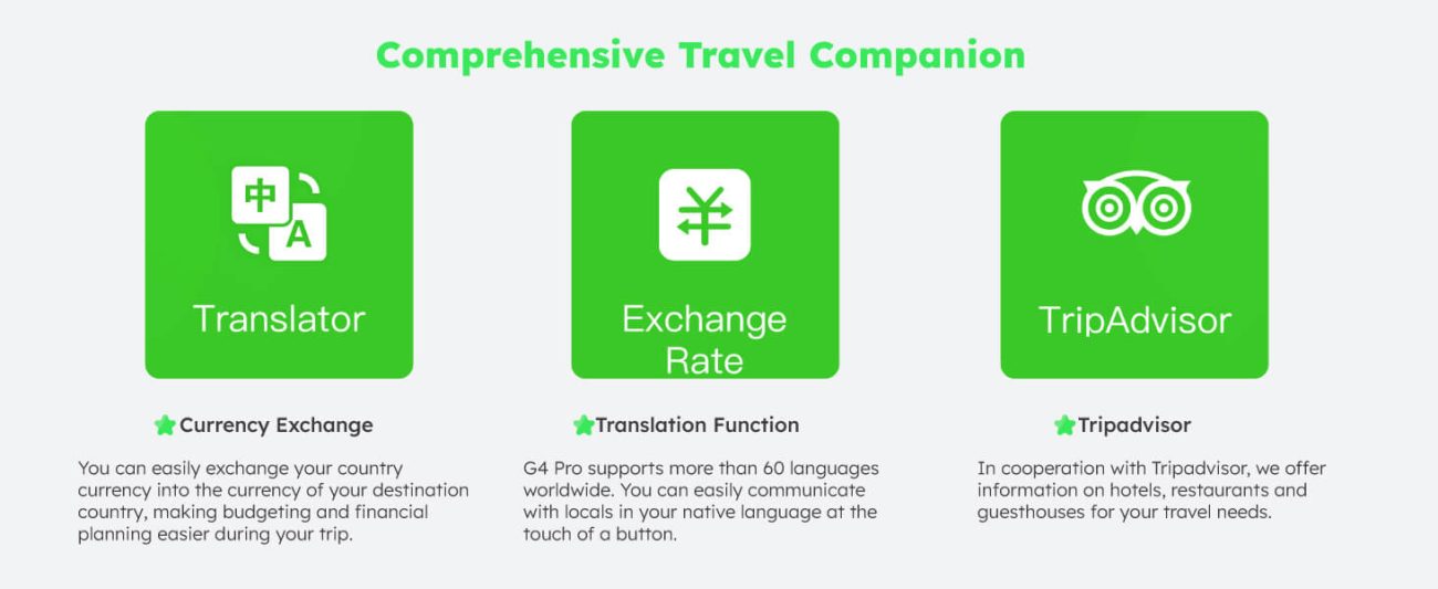 5" Large Touchscreen, Tripadvisor and Translator pre-installed |