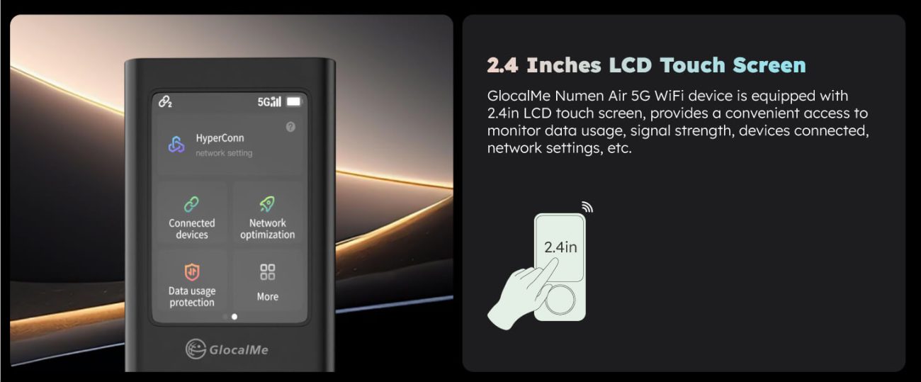 5G worldwide wifi hotspot with touchscreen.